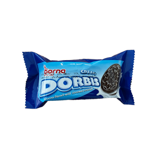 بیسکویت کاکائویی با کرم نارگیلی دربیس درنا 50 گرمی