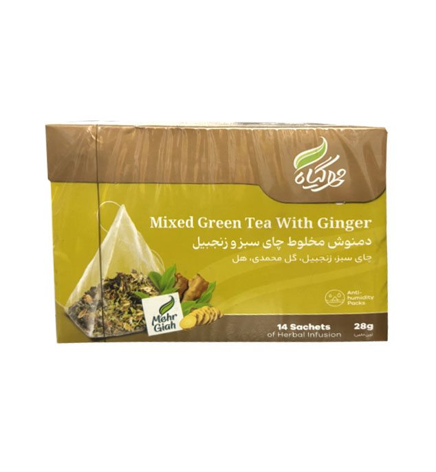 دمنوش مخلوط چای سبز و زنجبیل مهرگیاه بسته 14 عددی