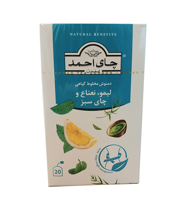 دمنوش گیاهی لیمو ، نعناع و چای سبز چای احمد ساشه 20 عددی