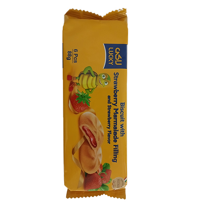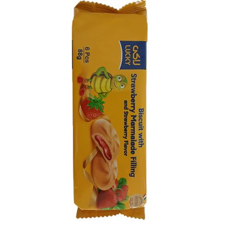 بیسکویت با مغزی توت فرنگی لاکی 88 گرمی