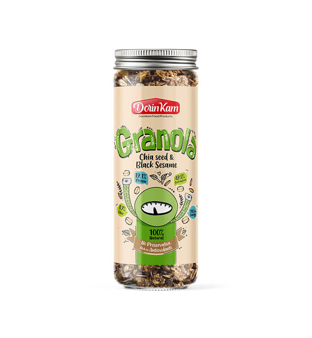 گرانولا شیشه ای کنجد سیاه و دانه چیا درین کام 380 گرم